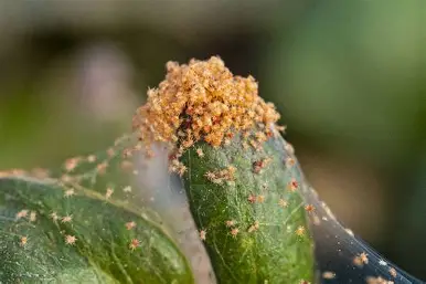 Red mites cause yellow mottling on leaves and produce fine webbing on the undersurface. Severe infestation may lead to drying of the leaves. Infested leaves often become bronze in colour and plants show poor vigour, which ultimately reduces flower yield.